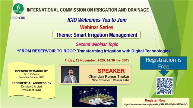 ICID has started a “Technical Webinar Series” on the theme "Smart Irrigation Management" showcasing best practices and success stories in agricultural water management. The first webinar of this series